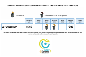 JOURS DE RATTRAPAGE DE COLLECTE DES DÉCHETS DES VENDREDIS 1ER ET 8 MAI 2026