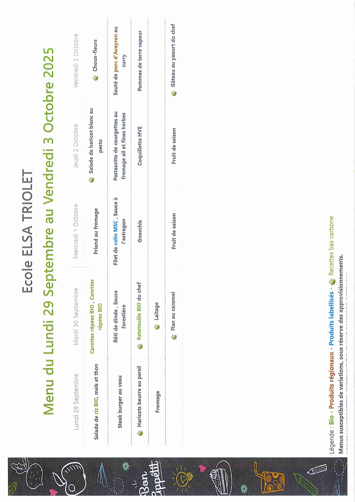 PAS DE MENU A DIFFUSER PENDANT LES VACANCES